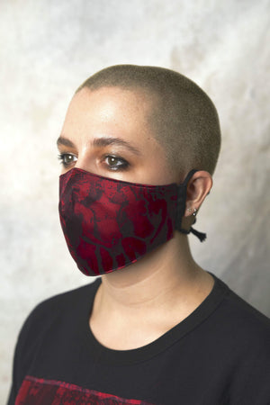 Reusable plastic free face mask in silk with cotton lining, an internal pocket for your own personal filter and a soft cotton rope for the perfect fit and maximum comfort.