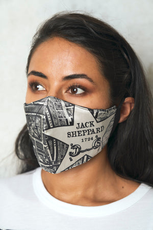 The Boundary print is adapted and customised from John Rocque’s 1746 plan of London to show the streets and landmarks that Jack Sheppard knew. From Newgate Gaol, the location of Jack’s daring escapes, to Tyburn, now Marble Arch, are picked out for note with a Georgian illustration. For example the infamous triangular gallows of the ‘Tyburn Tree’ where Jack met his eventual end, at what became the largest publicly attended hanging ever. This began Jack’s passage into London folklore legend.
