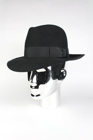 Classic fedora with a curved brim front to back. Finished with a Petersham band and a single bow.