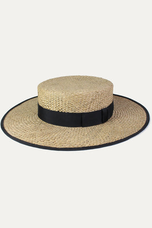 Offered here in straw with a Petersham band.